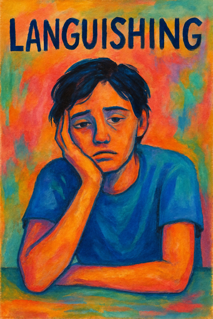 Languishing is a state of mental health that falls somewhere between depression and flourishing.  It’s often described as a sense of emotional dullness — like the color has drained from life,  leaving everything muted. There’s no full collapse, but there’s also no spark.
